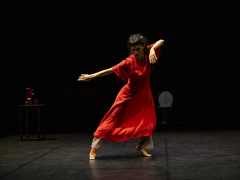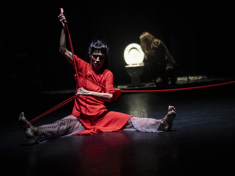 La scena è essenziale: pochi oggetti, un linguaggio fisico che accompagna la narrazione, la voce come strumento musicale, un flusso di coscienza, un canto dissonante, e un corpo che freme per raccontare la velocità inarrestabile del tempo che passa e la lucida follia della stirpe di Edipo.